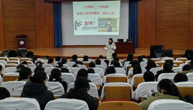 她从同学们即将参加的研究生入学考试谈起,希望同学们保持坚定的信心,坚持不懈,并祝愿考研学子能够通过考试,成功进入新的学习阶段。她谈到,2021年9月在给同学们上的开学第一课中,曾给同学们介绍了学院的发展历程、学科建设和研究生教育等方面的情况,并帮助同学们规划了在校期间的学习发展方向。三年多的时间,全体同学脚踏实地、刻苦学习,在生物与环境工程学院优良学风的滋养下,扩宽了视野,锤炼了学术研究与创新能力,为未来发展打下了坚实的基础。在研究生考试来临之际,王君给同学们提了三点建议。一是不忘初心,勇担使命,把个人理想融入强国征程,培养家国情怀。二是坚持学习,诚信应试,认真对待人生每一场考试。三是躬身笃行,知行合一,争做生态文明建设的践行者和保护者。