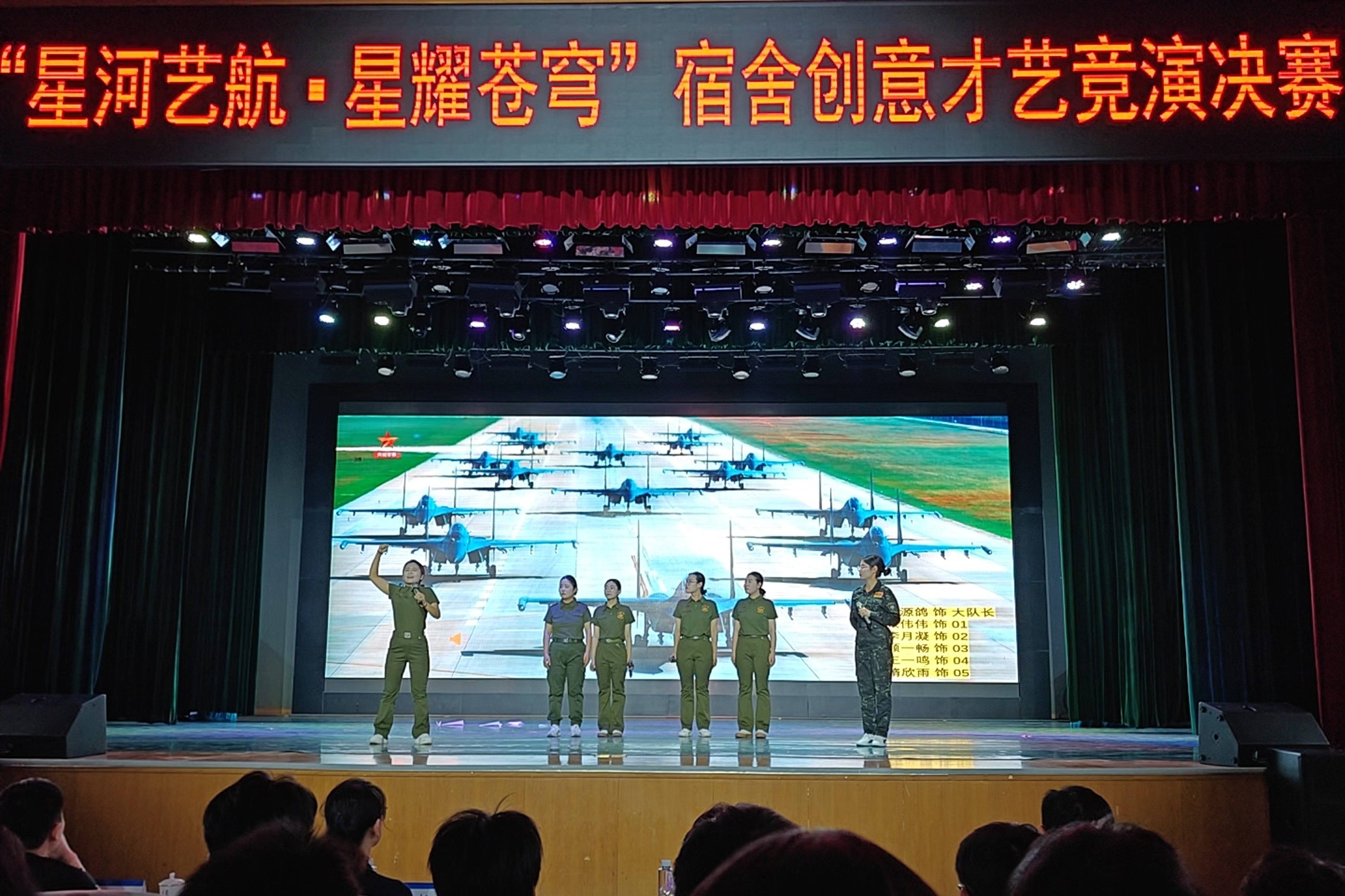比赛现场,情景剧《我心飞翔》以层层递进的戏剧张力,勾勒出航空人的心路轨迹。赛中精彩纷呈,飞行员队伍中气氛凝重如霜,当“备份飞行员选拔”的指令掷地有声,学员们面露惊诧,飞行员们的质问里翻涌着不甘与困惑;01转身以“替补也能出成就,台前幕后皆荣光”劝慰同伴时眼神灼灼,却未料自己成了最终人选,眼眶泛红的悲愤中,藏着对蓝天梦想的灼热眷恋;当“技术一流、作风过硬”的评价落定,她从攥紧拳头的抗拒到垂眸沉默的接受,指尖的颤抖里,交织着军人的服从天职与“舍小我”的担当隐痛。当她颤抖着说出“如果我飞了就意味着她们当中有人飞不过去,我不想那样”时,全场静默。表演尾声,全体演员以“你飞就是我飞,我心飞翔”的深情呼应,上升到全体试飞员舍小我,融大我,为国家社稷贡献青春自我的高尚品格和人格魅力。